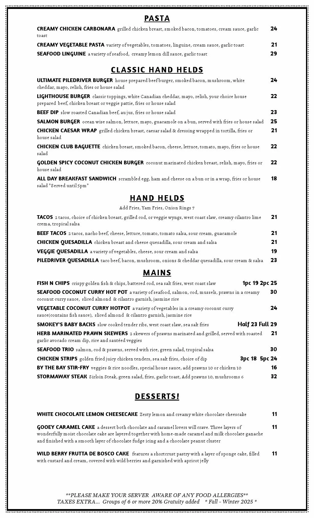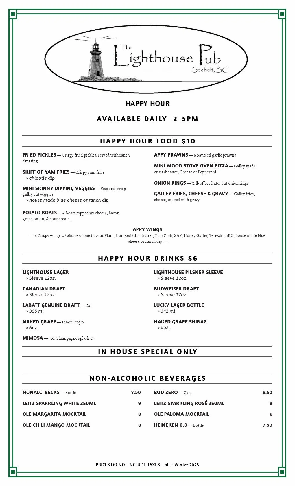 Enjoy our daily Dinner Features ranging from scrumptious Seafood dishes to our famous Wings!